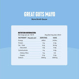 • Ever heard of a gut-friendly mayo? Well, you have now! Our super creamy and Great Guts Mayo is the easiest way to incorporate nature's best ingredients into your whole family's diet. Not only does every tablespoon of sauce contain a whole serve of the world’s most nutrient dense bone broth, but it’s also made with Organic EVOO, Organic Psyllium Husk and Organic ACV and it’s packed with prebiotic fibre to feed your good gut bugs!